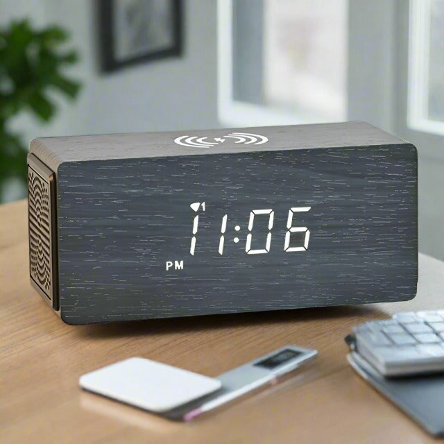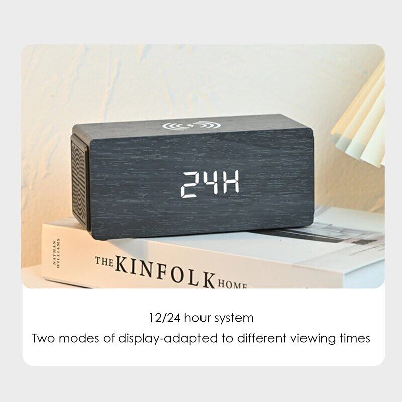 15W Wireless Fast Charging Bluetooth Speaker Digital Clock, combining functionality and style to enhance your daily routine.Elevate your space with the perfect blend of functionality and sophistication with the 15W Wireless Fast Charging Bluetooth Speaker Digital Clock, designed to simplify while adding a touch of luxury to your surroundings.